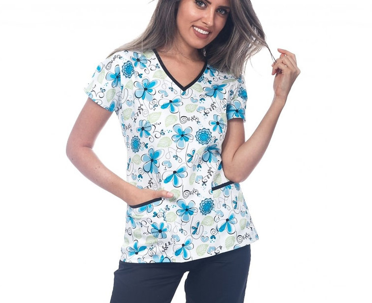 Strih blúzky je mierne zúžený, prirodzene zvýrazní siluetu a neobmedzuje v pohybe. Veselá potlač rozjasní pracovný deň.